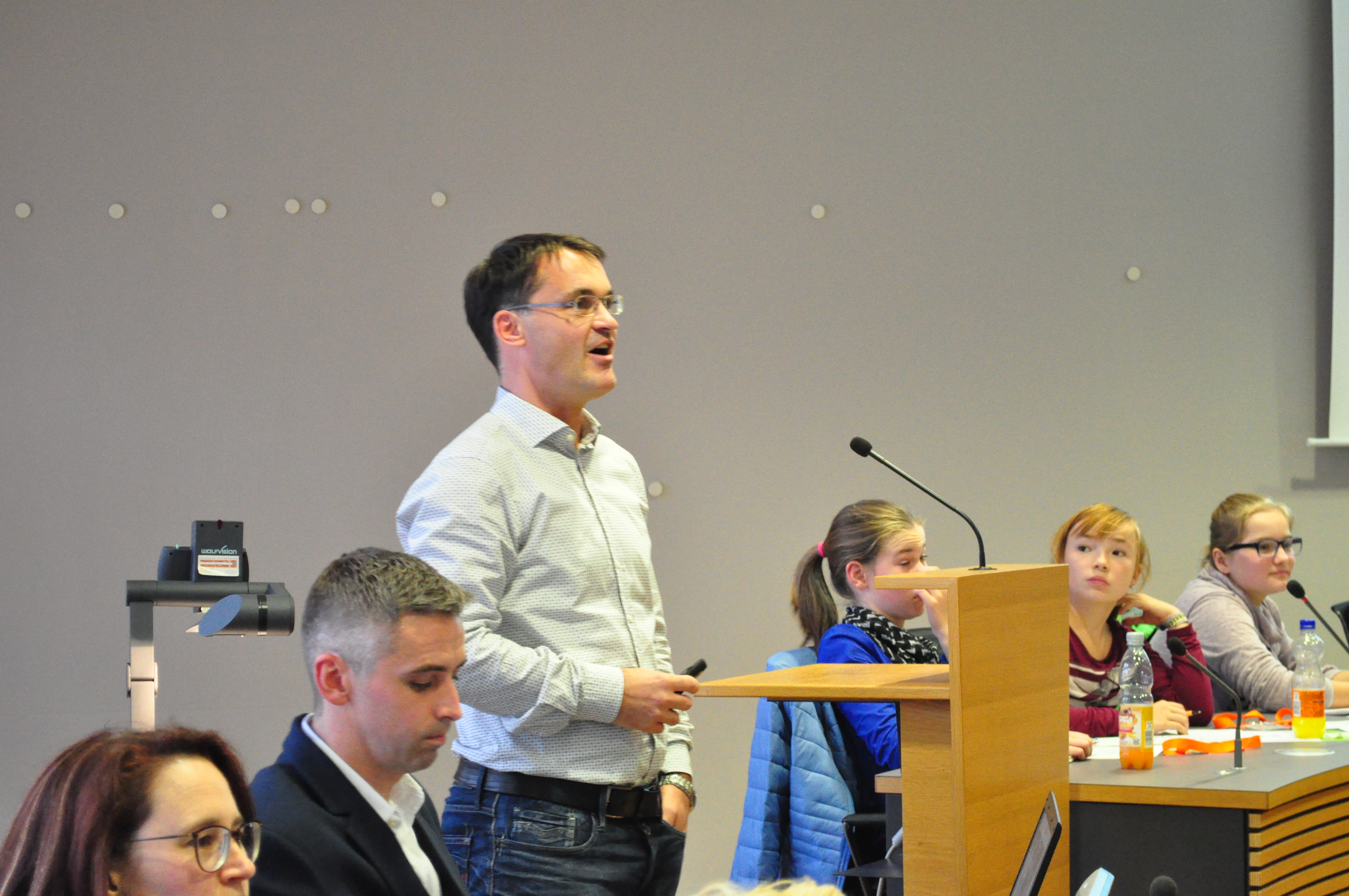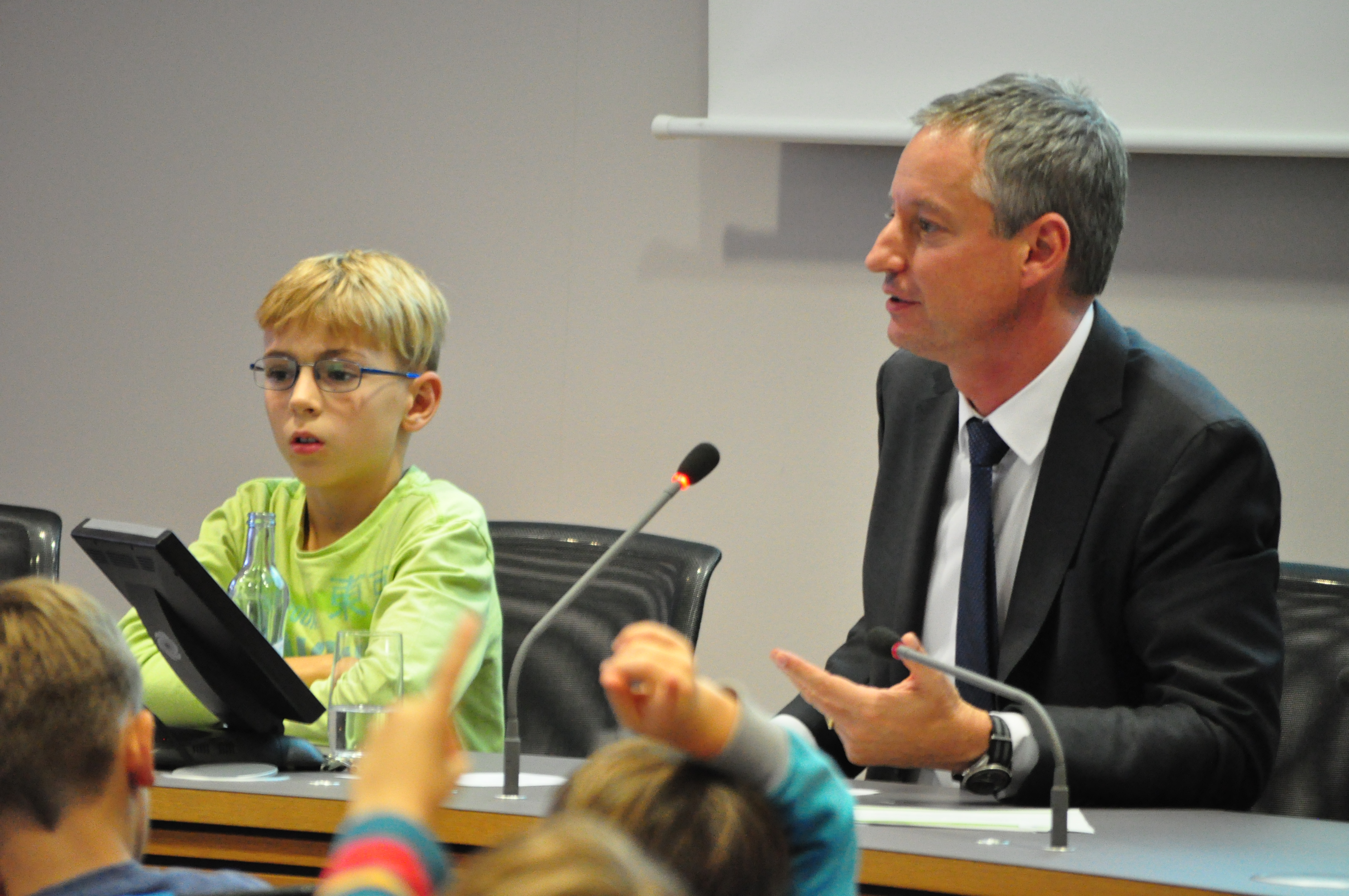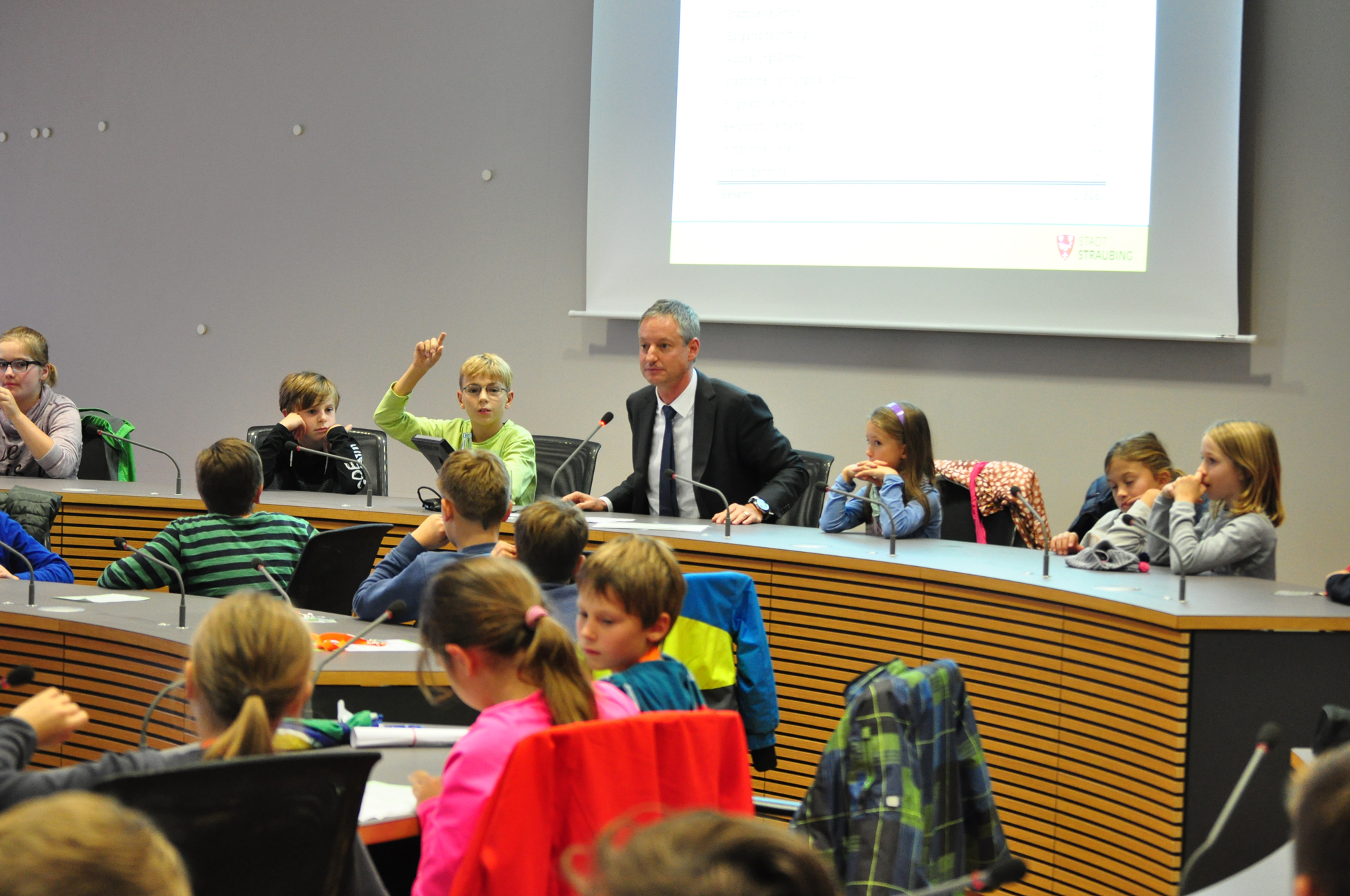 Er berichtet von seiner Arbeit als Chef der Verwaltung und als Vorsitzender und Leiter der Sitzungen des Stadtrates. Und die Kinder dürfen selbst in die Rolle von Politikern schlüpfen: In kindgerechter Form wird eine Sitzung des Stadtrates nachgeahmt: vom Aufstellen der Tagesordnung über den fachlichen Vortrag bis hin zu Abstimmung und Beschlussfassung.